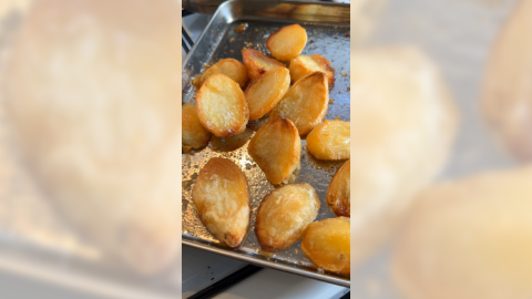 We recommend you use Maris Piper potatoes for the perfect roasties. According to 'The Science of Cooking' by Dr Stuart Farrimond, these are the best variety of potatoes to use if you’re looking for that perfect balance of seriously crispy on the outside and heavenly fluffy on the inside. In a pinch, King Edward or Charlotte potatoes will serve you well, too.